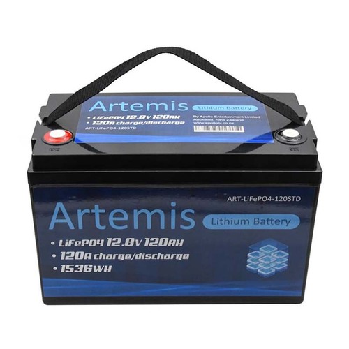 Update your RV by installing the Artemis Standard Lithium Battery 12V/120AH, an innovative and reliable solution with excellent benefits that lithium iron phosphate batteries provide such as a long life cycle and improved safety.