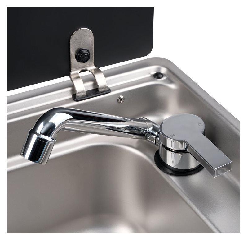The unit also features two safety glass lids for protecting the stove and valuable bench space whilst the stove and sink is not in use. When cooking duties are done, remove the trivets to wipe down the surface.