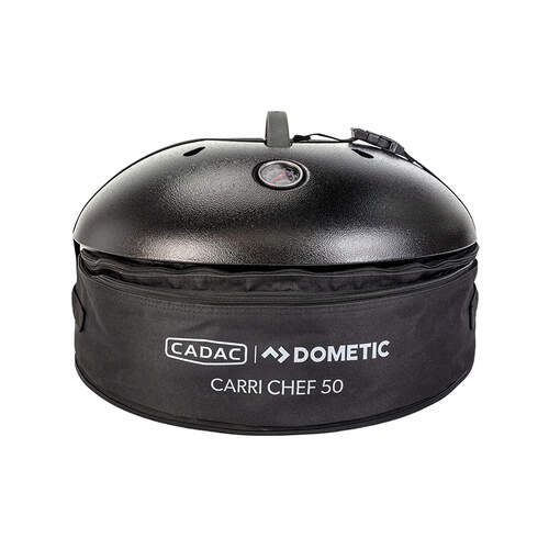 The Carri Chef 50 comes complete with a BBQ grid, pot stand and a domed lid with a built-in thermometer that ensures perfect temperature control, whether you’re grilling or roasting.