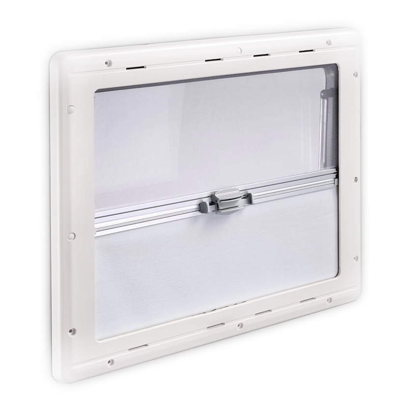 The Dometic Dlux Window is a top-hung hinged window that boasts a built-in aluminium-coated darkening blind and a fly screen.