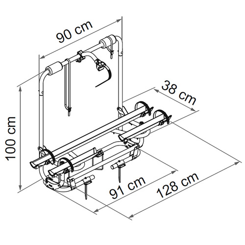 **The rear rail offset is the measurement from the furthest forward part of the bike carrier which fits tot he carrier frame, to the centre of the bike rail nearest the caravan. Add this to the measurement from the centre line of your bike to the edge of the pedals to see if this bike carrier will fit your caravan.