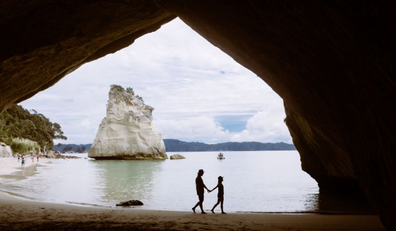 Why stop: Coromandel packs a lot into a compact corner of coastline. It’s home to Cathedral Cove, worth the walk for its natural rock arch, and Hot Water Beach, where you can dig your own hot pool right on the sand. Inland, the region’s ancient kauri forests offer a quieter contrast to the coast.