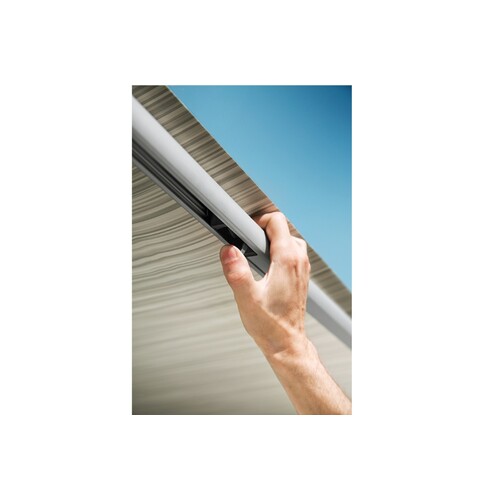 Simply slide the awning into the existing rail on your caravan. The fabric is coated in PVC so it is colour-fast and weatherproof, and you can employ the pump-buckle technology to create perfect fabric tension.