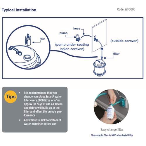 The Whale Aquasmart Water Filter removes unpleasant tastes and odours from your fresh water. It is designed to be used with onboard pumps (vs external), Simply connect the filter to the end of your water intake and submerge it in your water tank/supply.